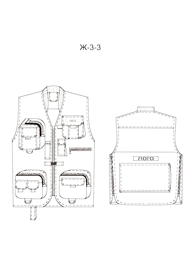 Вырез:V-образный, обработан по месту воротника вязаной трикотажной эластичной лентой. На полочке множество карманов - Pin-Up разной конфигурации